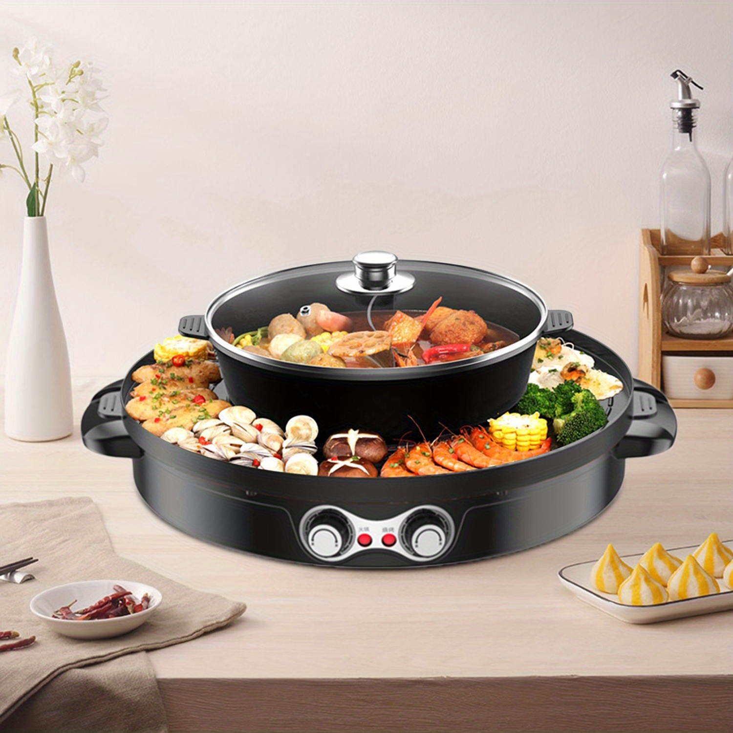 Goodslinesshop Electric Oven Double Separation Mandarin Duck Pot 2in 1 2200 W Barbecue Grill Household Hot Pot 44cm Baking Mould Grill Pan Ceramic Coating Smokeless Indoor for 5-8 People High-Quality Shop Now!