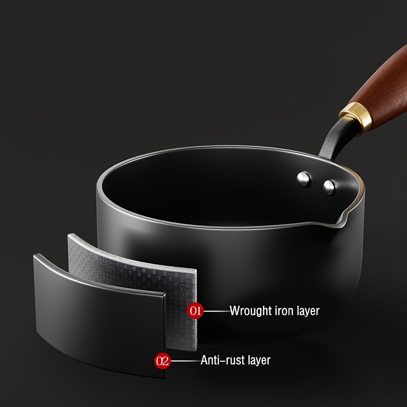 Pot for Milk And Soup Featuring a Wooden Handle - Suitable for Induction Cooktops, Perfect for Whipping Cream, Boiling Water, And Preparing Soups, Essential Kitchen Cookware, Compatible with Stovetops, Stylish And Durable