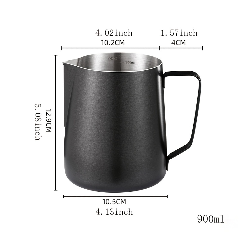 Stainless Steel Milk Pitcher 900ML Black And White Large Capacity La Hua Cup, Made Of 304 Stainless Steel, Suitable For Milk, Coffee, And Lattes; A Professional Milk Pitcher For Coffee Machines