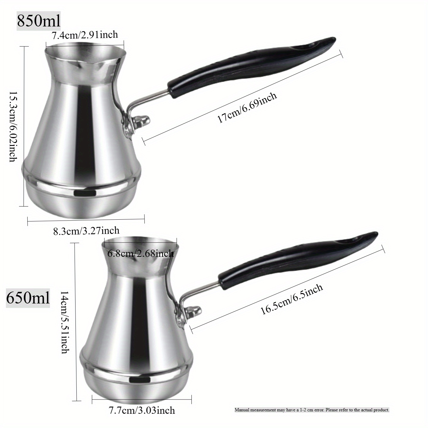Turkish Stainless Steel Coffee Pot • European Style Long Handle Coffee Appliance Tool • Milk Jug Milk Frother • Hand Flush Pot Latte Cup for Coffee Making